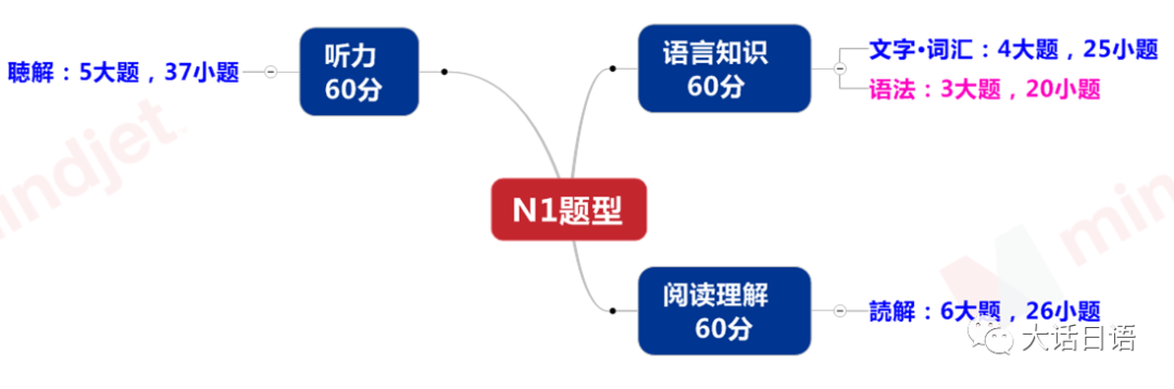 N1題型分為3大部分,總分180分:
