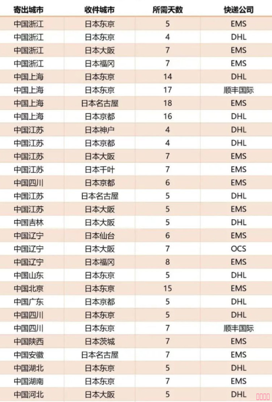 從中國往日本郵寄東西需要多久