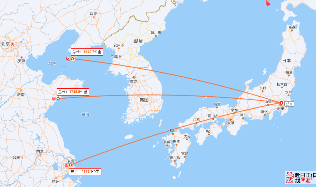 答:日本離中國最近的城市有大連、丹東、青島、上海、福州等地。